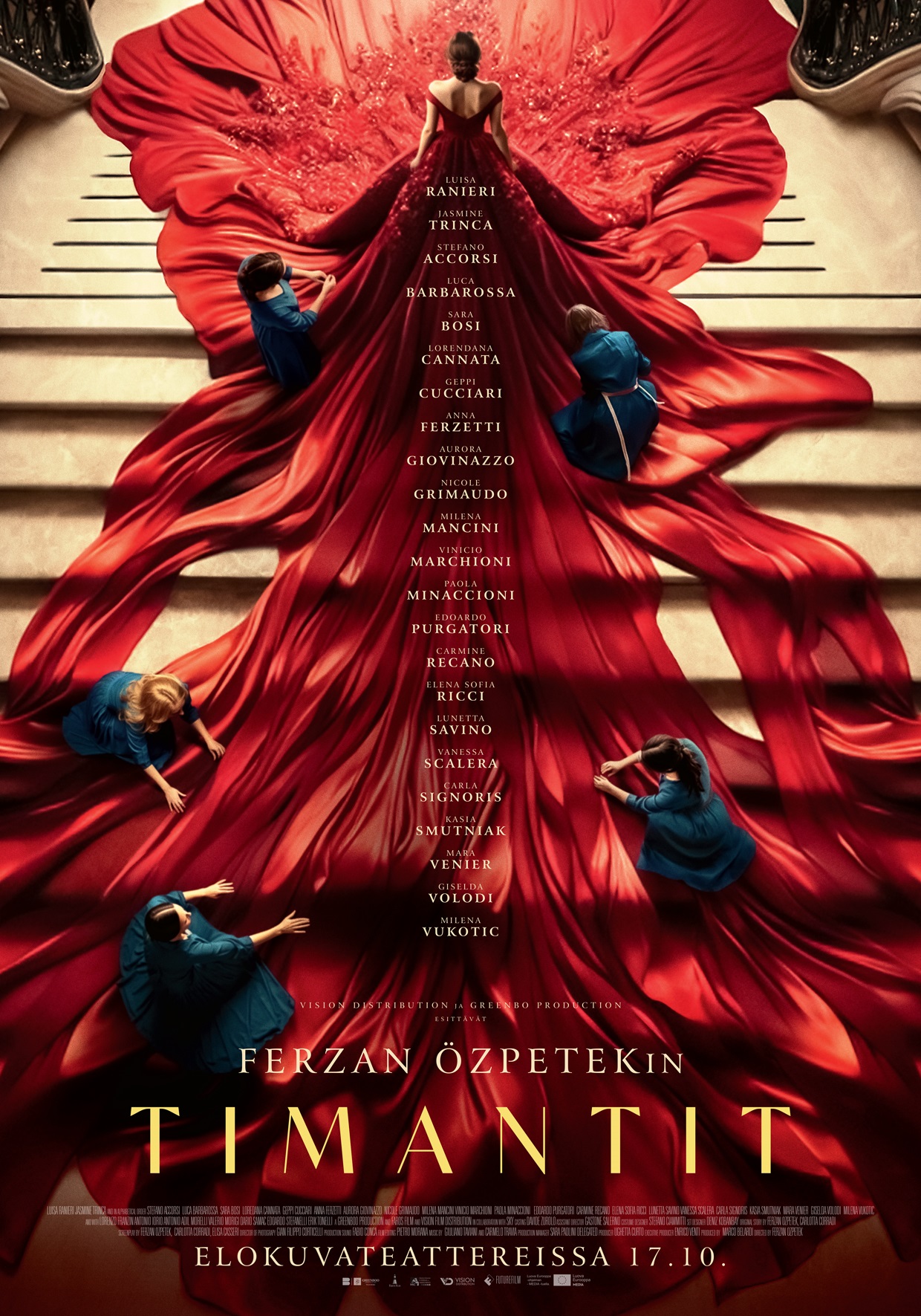 Avajaiselokuva TIMANTIT tiistaina klo 4.11. klo 17 vie meidät siltä istumalta suoraan Roomaan. Se on säkenöivä rakkaudentunnustus italialaisillenaisille, tunteille ja elokuvan taialle. Elokuva sijoittuu 1970- luvun Roomaan, arvostetun räätälöintiliikkeen kulisseihin. Elämänmakuisessa elokuva naisvaltainen työpaikka on toimeentulon lisäksi ”toinen koti”, erottamaton osa elämää ja identiteettiä, tunteiden tyyssija jossa eletään laajennettua perhe-elämää italialaisittain – eli värikkäästi.